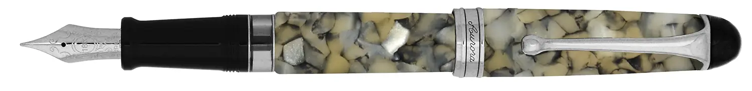 Stilografica con cappuccio e corpo in Auroloide screziata grigia.