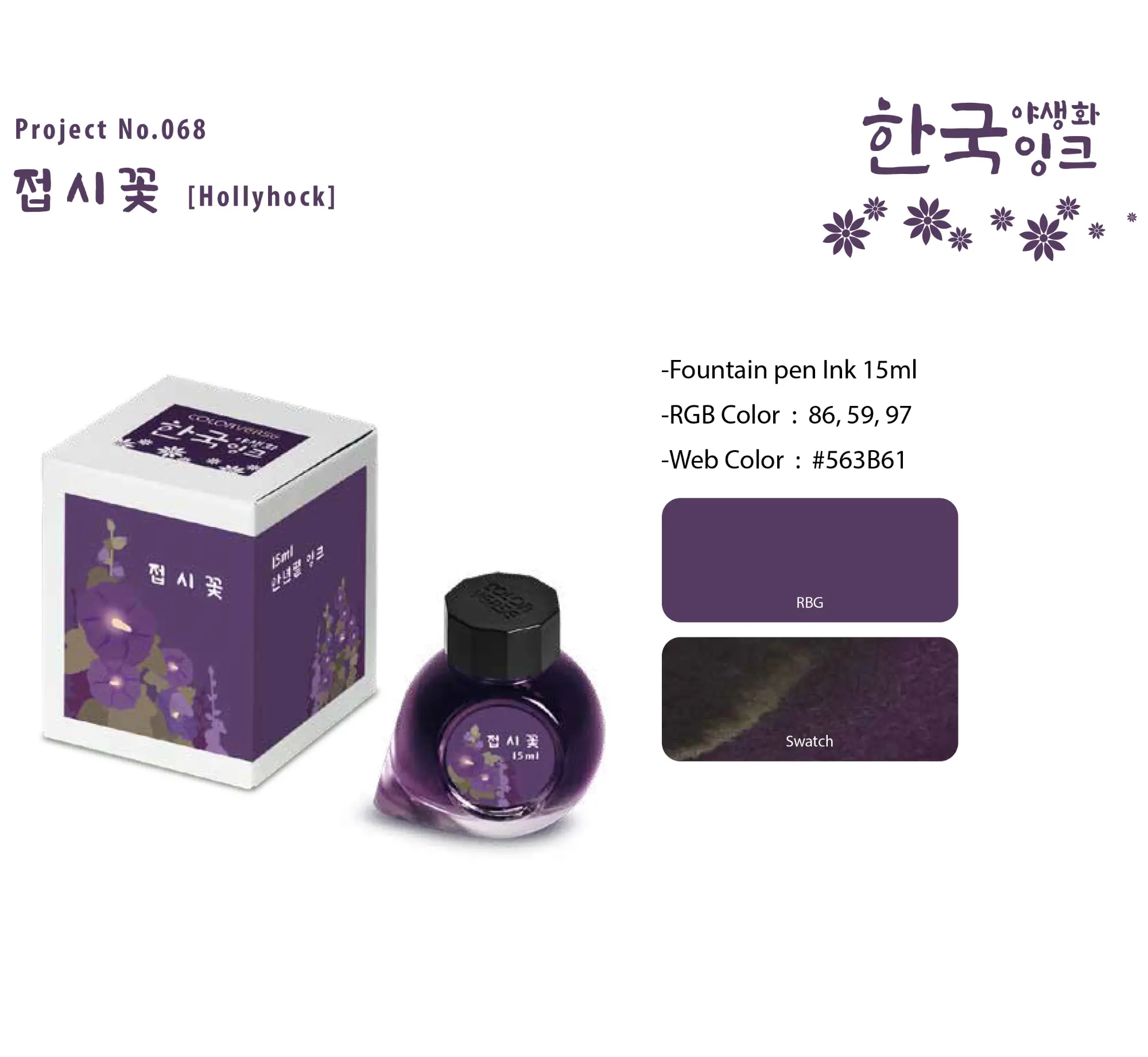 Ispirato al vivace fiore Hollyhock, che decora i giardini coreani in estate, questo inchiostro della serie Wildflower di Colorverse offre una tonalità viola floreale profonda, elegante e decisa.