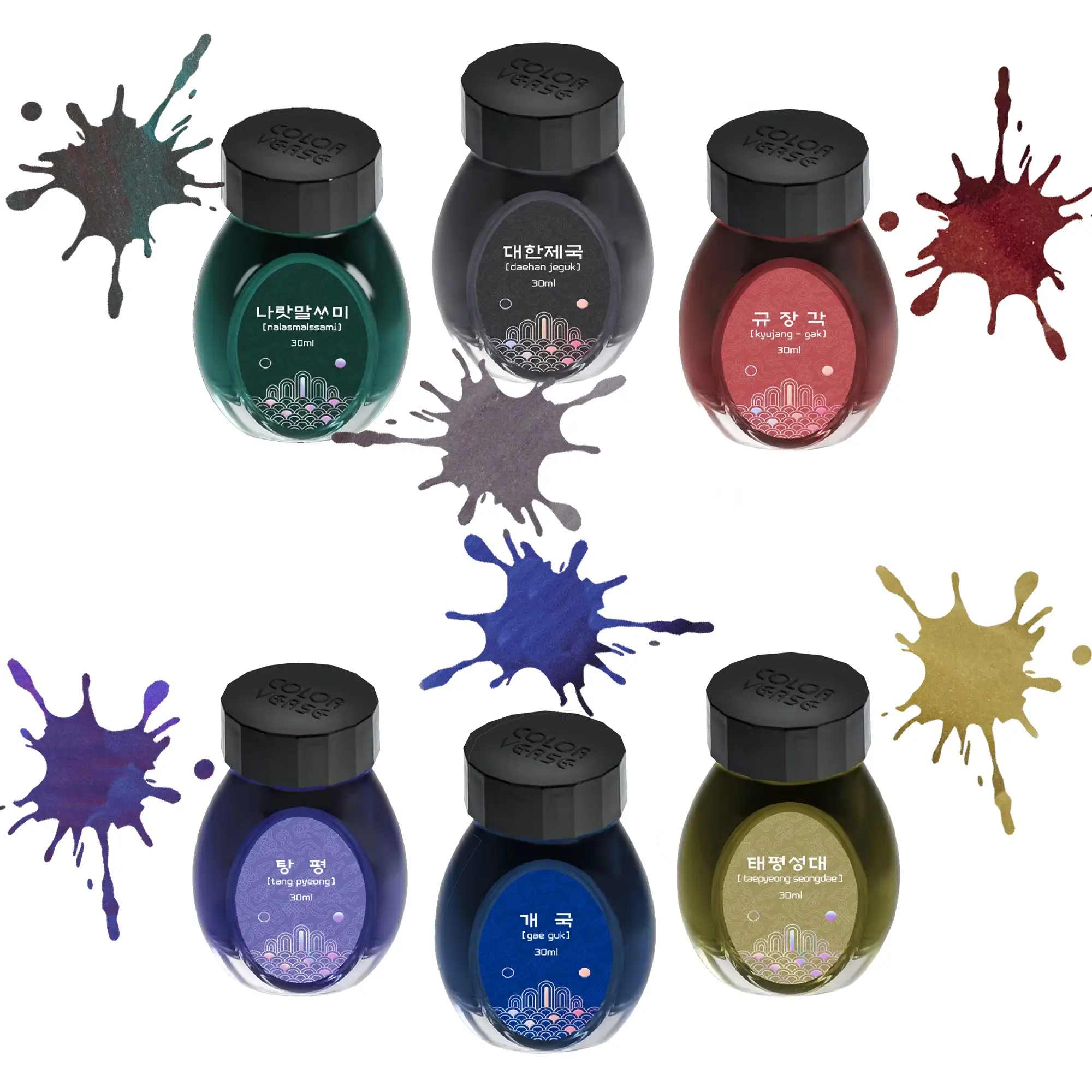 Calamaio d'inchiostro da 30 ml disponibile in sei colori ispirati alla cultura tradizionale coreana. Gli inchiostridella collezione Kingdom Series prendono il nome dei sei Re del regno Cho-Sun.