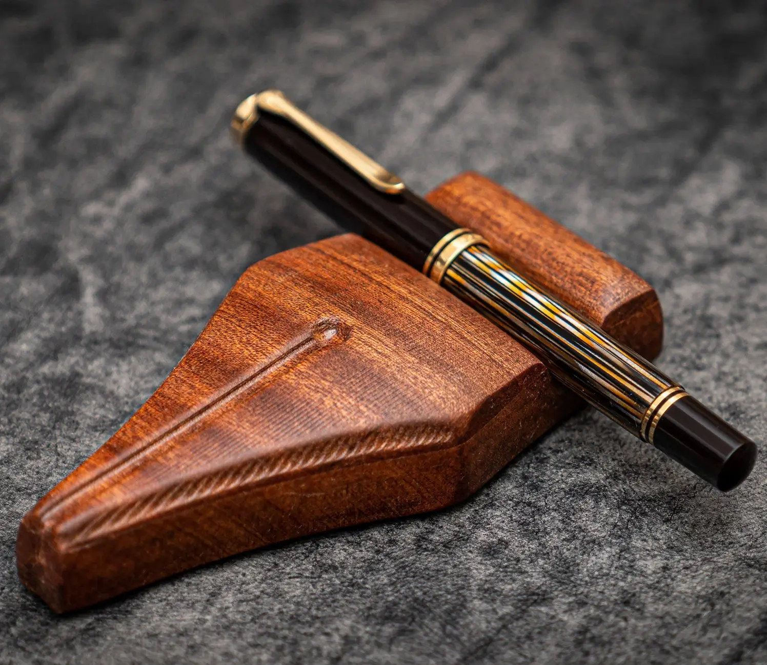 Galen Leather The Nib Rest Wooden Pen Stand - Mahogany