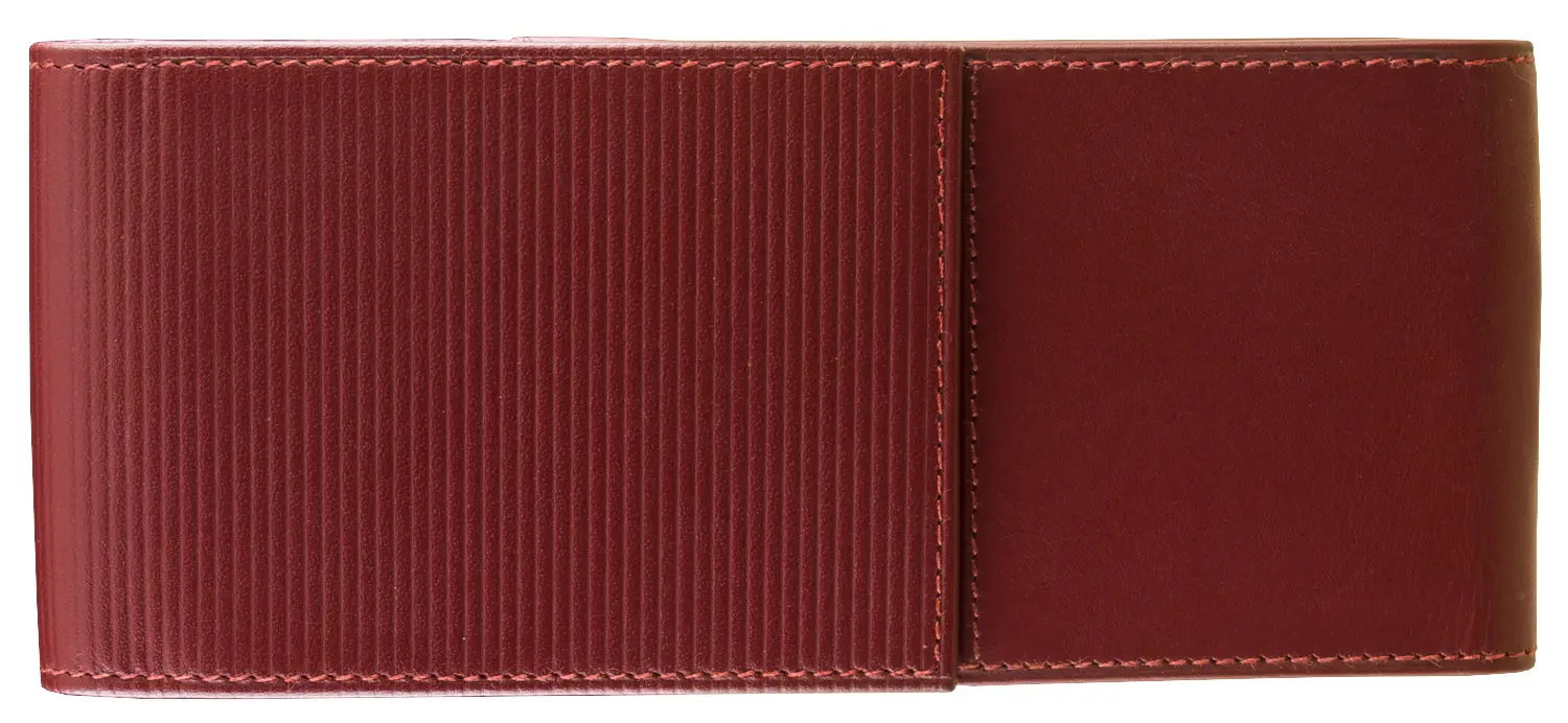 Portapenne a 3 posti in pelle rossa con pattina a motivo "mille righe".