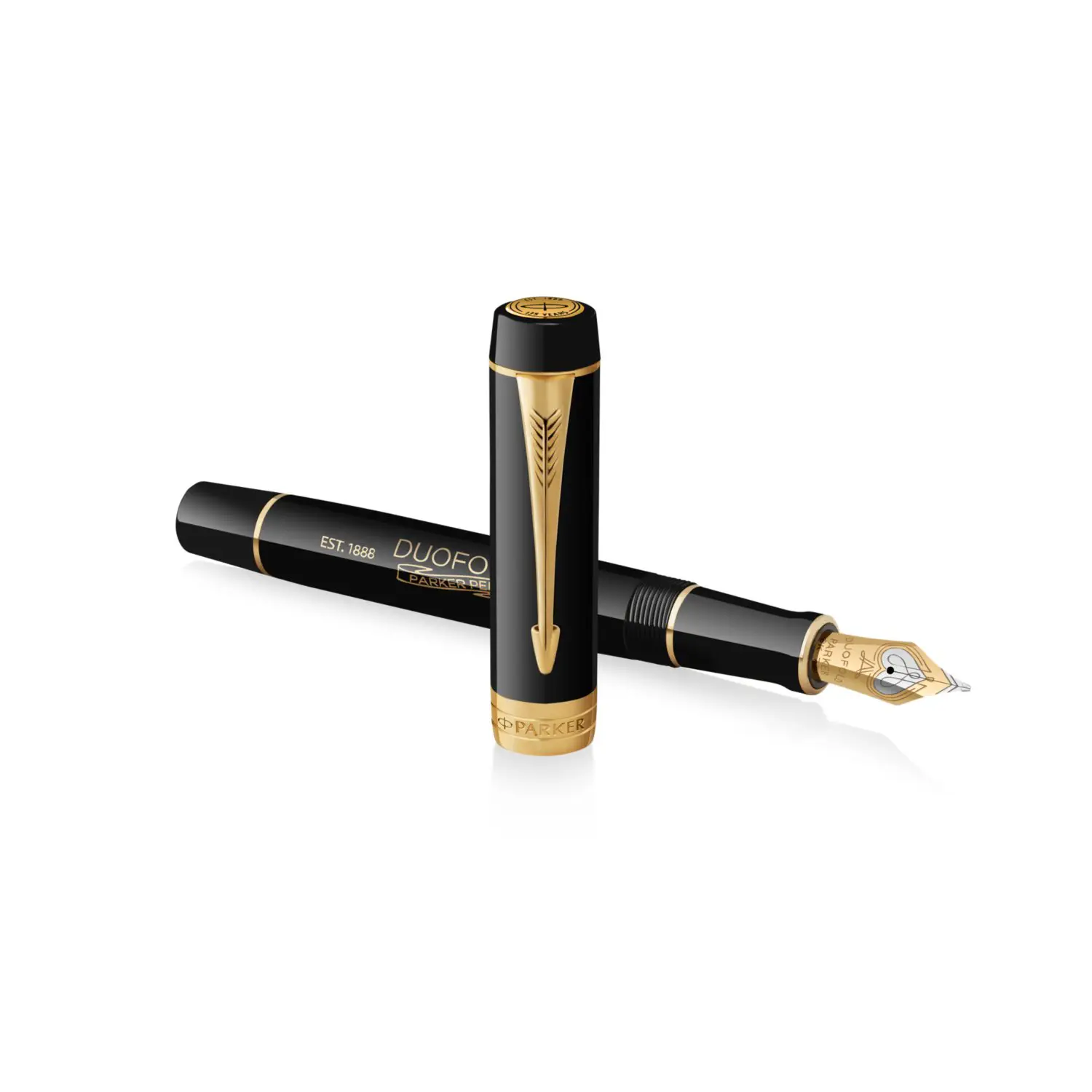L'artigianalità di Parker è esemplificata dai dettagli più fini, come la caratteristica clip a freccia Parker, i pennini in oro massiccio 18 carati e l'assemblaggio a mano dei suoi strumenti di scrittura più iconici, come la Parker Duofold.