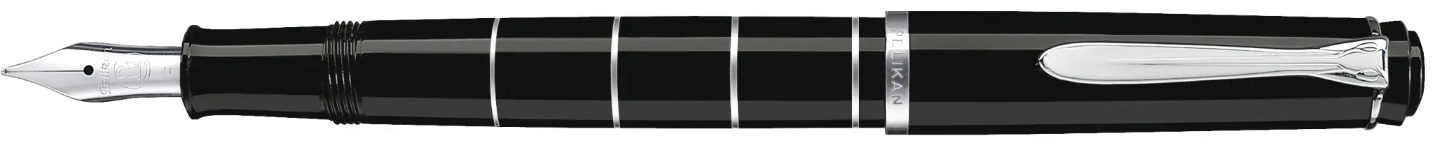 Il cappuccio, caratterizzato dal tipico fermaglio a becco di pellicano, il logo Pelikan sulla parte superiore della penna o del cappuccio e la tipica forma classica di ogni esemplare si fondono armoniosamente tra di loro e offrono a questa serie di strumenti per la scrittura il tipico design Pelikan.