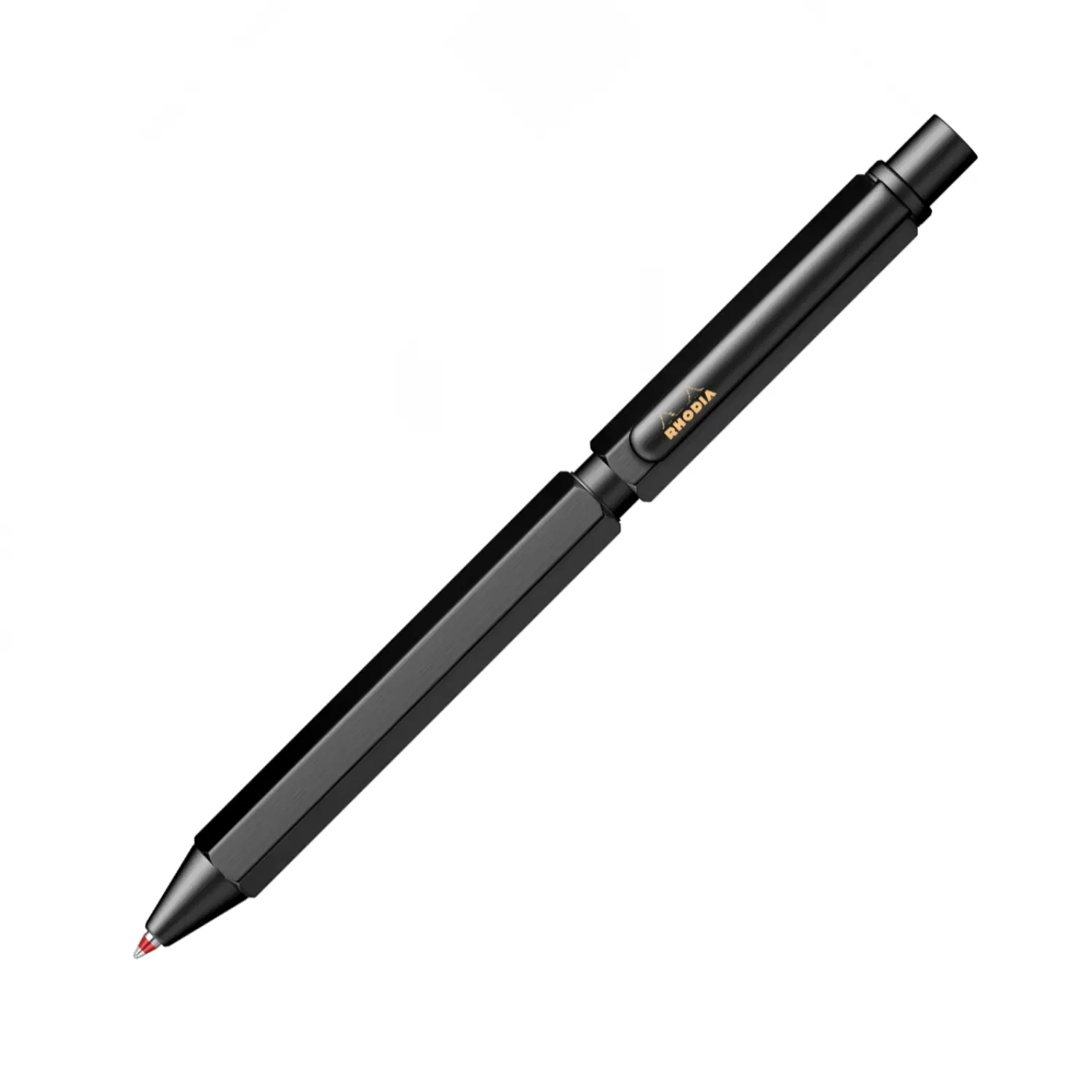 Il fusto esagonale in alluminio Brushed offre una presa salda e confortevole, mentre il profilo raffinato la rende degna del marchio Rhodia in ogni dettaglio.